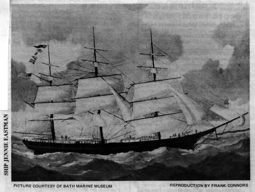 The Ship JENNIE EASTMAN was constructed in the Harward Shipyard on the Kennebec at Bowdoinham. The year was 1863, and the United States was being ripped apart at the heart by the Civil War.
