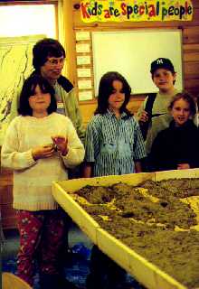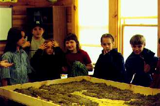 Brunswick teacher, and students making a model of Merrymeeting Bay watershed |