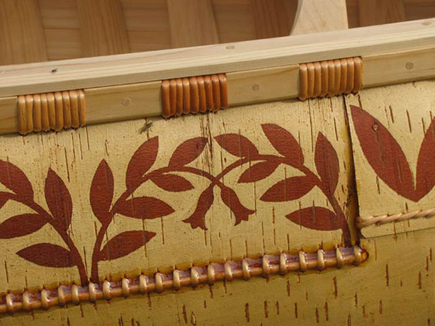 Birchbark canoe building is an outgrowth of Steve’s love for the woods. This feeling is seen in the artistry he puts into his canoes, and is epitomized by the graceful designs he etches on them in the dark “winter bark,” which is birchbark gathered when the tree is dormant. This ancient art form offers an opportunity for decoration that Steve uses not only to reflect traditional Wabanaki motifs, but also to express his own vision of the natural world, in the belief that each generation must infuse its own spirit into the tradition to keep it vital. Steve builds birchbark canoes on commission, and conducts research at museums, where he also offers consultation and conservation services. He teaches birchbark canoe building workshops in native and non-native communities.
