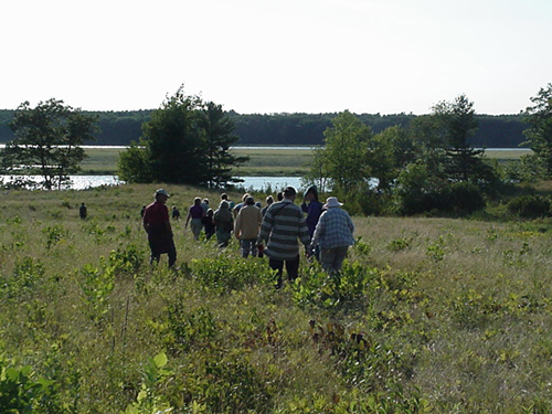 Choice View Farm near the mouth of the Eastern River offers one of two spectacular views of Merrymeeting Bay from a state road. The 25 acres of fields and wetlands were protected several years ago in an effort led by Friends of Merrymeeting Bay and are now owned by the state and managed by the Department of Inland Fisheries & Wildlife [IF&W]. Choice View Farm not only offers a spectacular view of the Bay but also valuable songbird habitat, unique populations of rare plants, proximity to bald eagle nesting habitat and shortnose sturgeon over-wintering habitat. The Farm is also the site of a 9-11,000 year old paleo Indian encampment discovered by archaeologists from the Maine Historic Preservation Commission and excavated in a cooperative effort with Friends of Merrymeeting Bay during the summer of 2003. This one site, blending the land protection, research and education efforts of FOMB, illustrates well the diversity of work this local organization has developed a statewide reputation for.